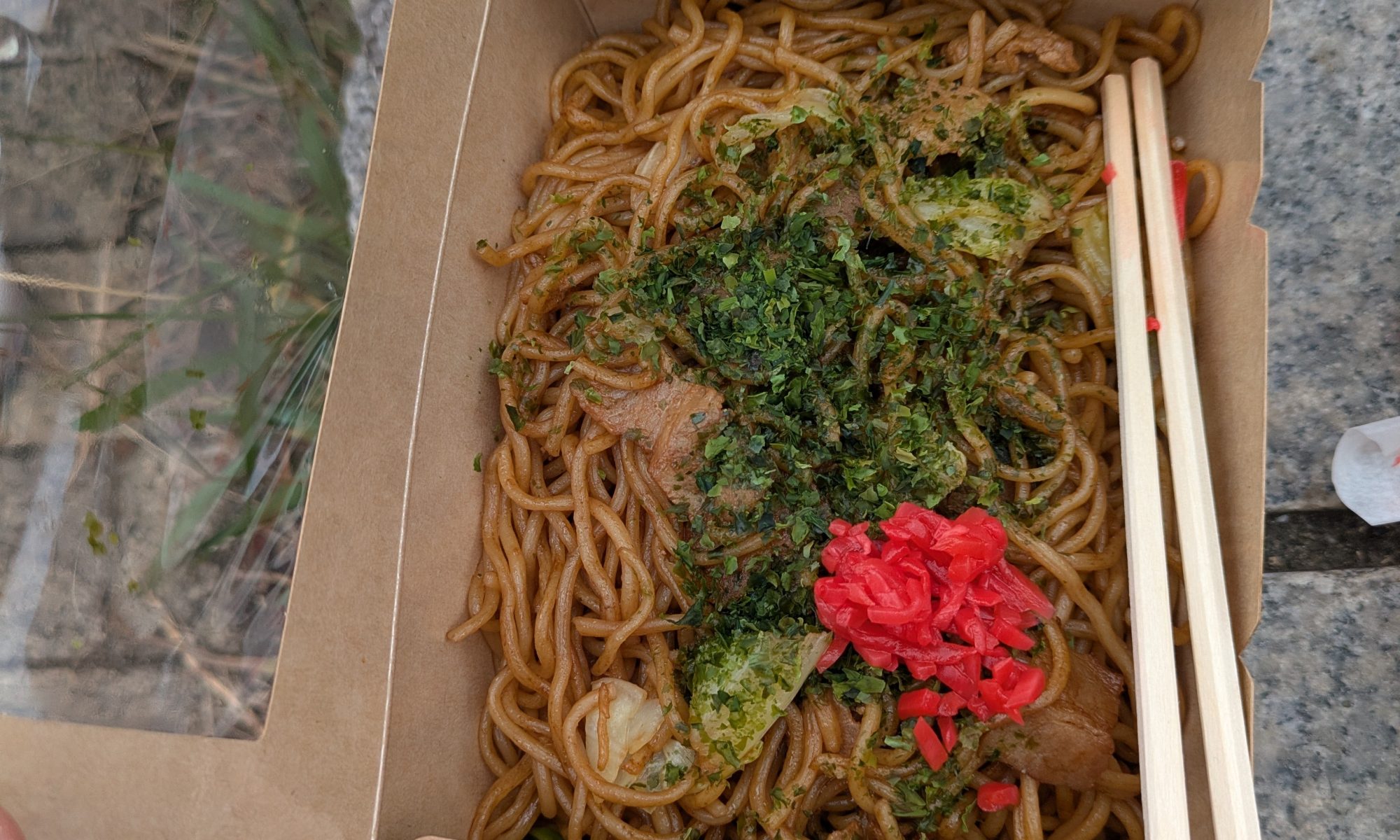 去年のキッズデイの時に、キッチンカーが長蛇の列で、パッと見かけたこちらで焼きそば食べました。今年のキッズデイの時も、売店の焼きそばでいいじゃん、って感じで2年連続で食べました。